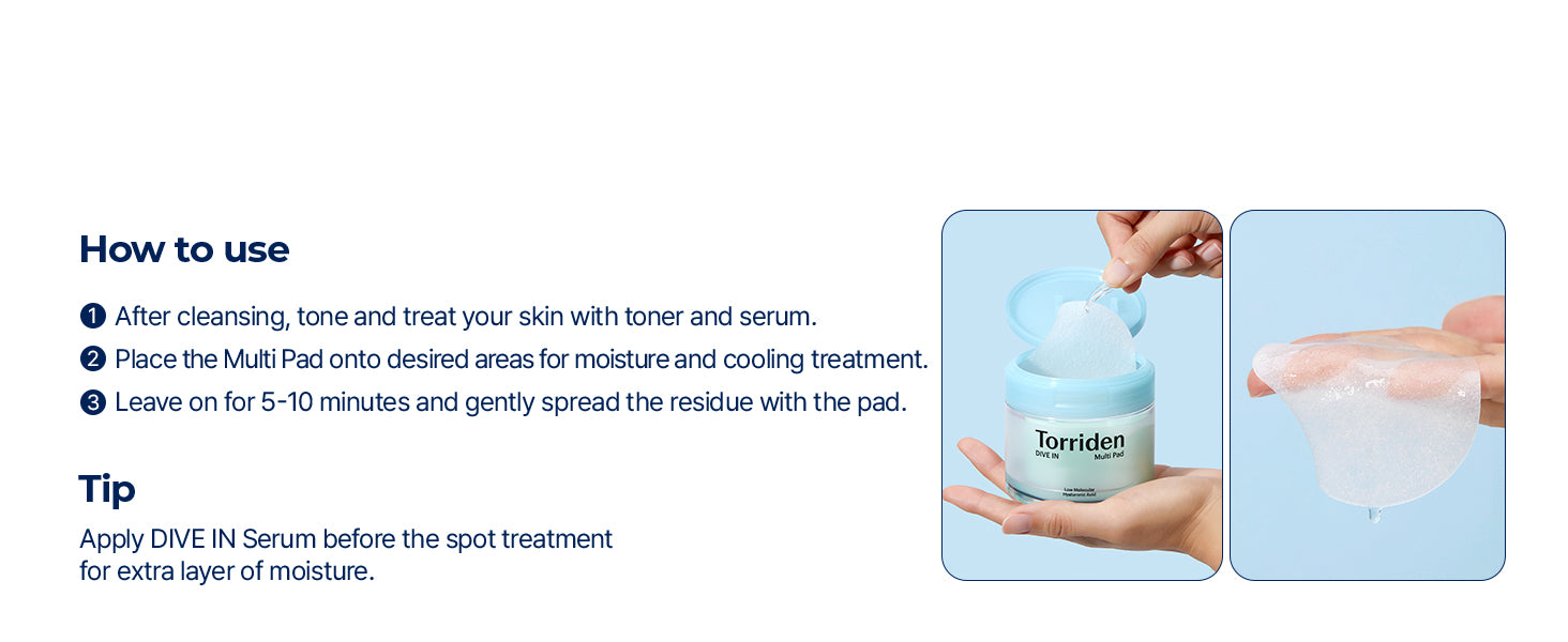 These Torriden DIVE IN pads feel so refreshing and soothing on my skin. They give instant hydration with hyaluronic acid and calm irritation quickly. The texture is gentle, not harsh, and the jar has plenty of pads for daily use. Great quality and value — I’ll definitely keep using them!