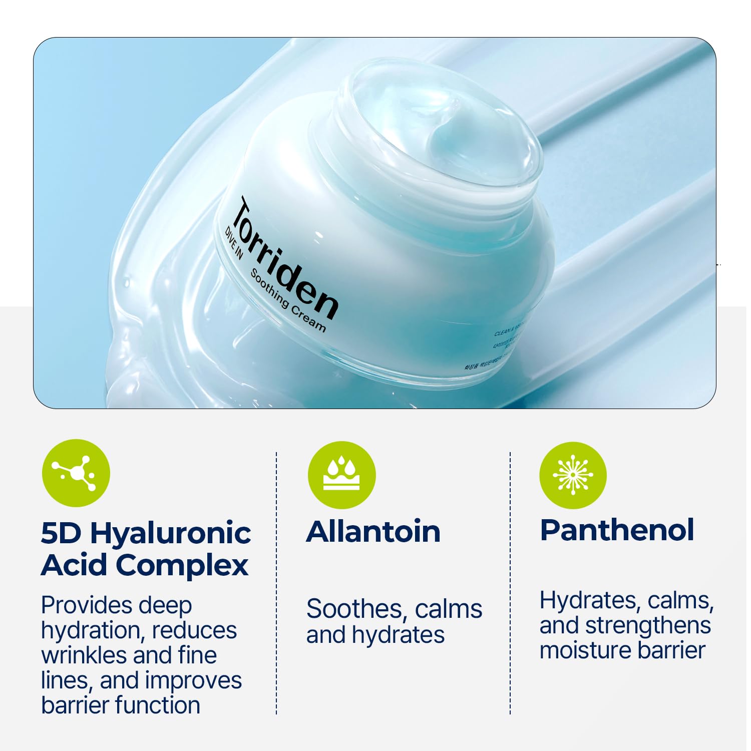 Torriden CREME SUAVIZANTE DIVE IN Ácido Hialurônico 100ml (3,38 fl. oz) | Hidratante Facial Revitalizante para Pele Sensível e Seca | Ácido Hialurônico, Pantenol, Alantoína