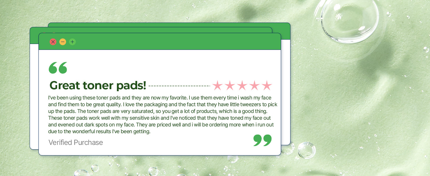 Cica Essence com Pads Veganos: Essência de Centella Asiática embebida em pads veganos para esfoliação suave, acalmar, hidratar e preparar a pele.