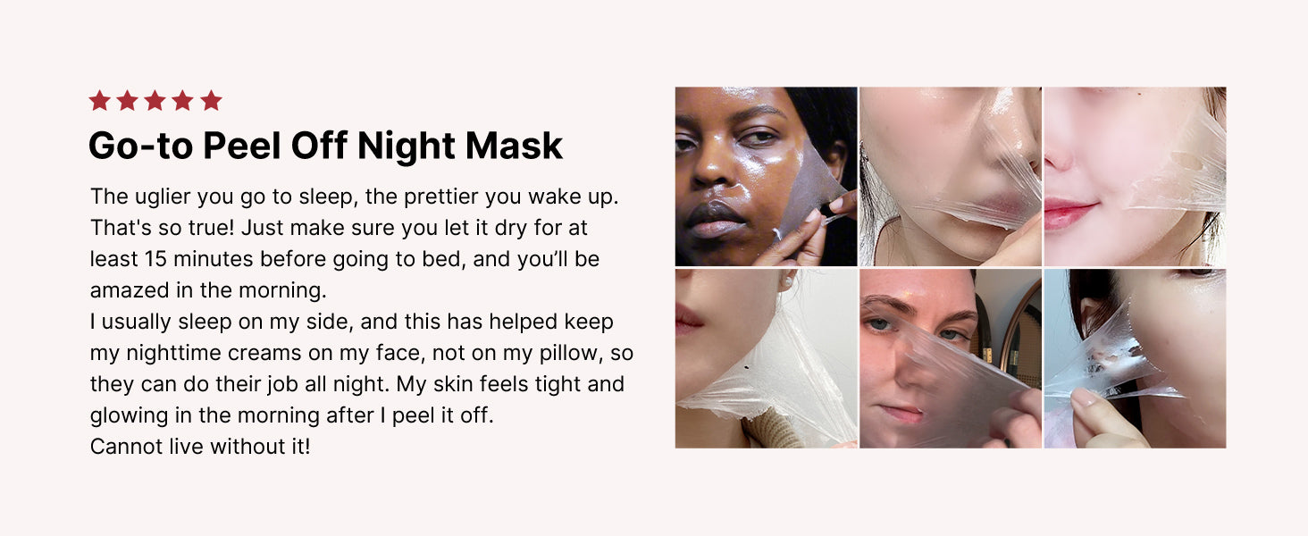 I love this mask. It does what it’s supposed to. My skin feels great afterwards !! I have bought other products from them as well. But this mask stays on. Unless you sleep really wild. It does not leave residue or make your skin feel sticky. Just follow directions