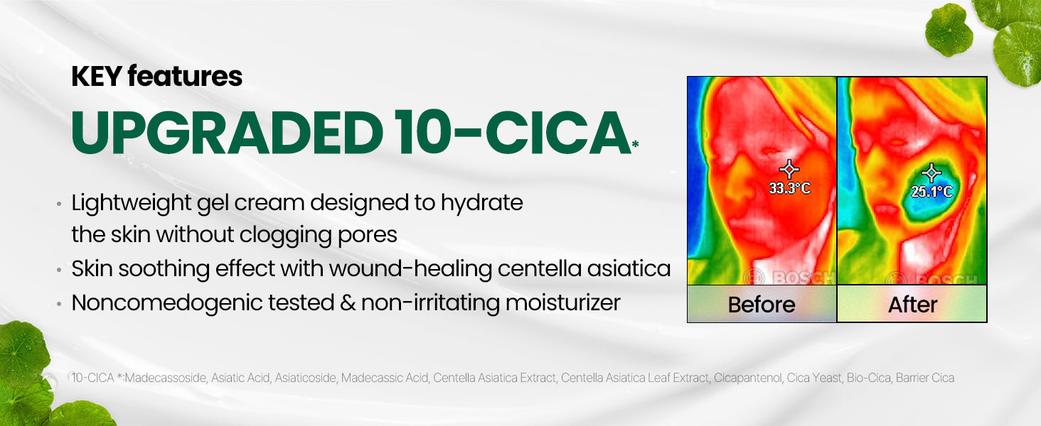 Contém complexo de cica, que pode efetivamente acalmar o calor e a vermelhidão da pele, além de repor a água para a pele