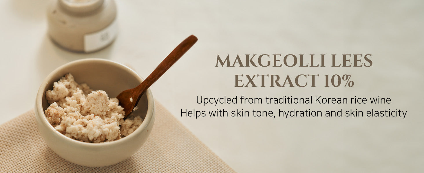 Resíduos de Makgeolli: Melhoria do tom da pele, hidratação e elasticidade. Os ingredientes ativos dos resíduos de Makgeolli extraídos em alta concentração através de fermentação em baixa temperatura tornam sua pele clara e vibrante.