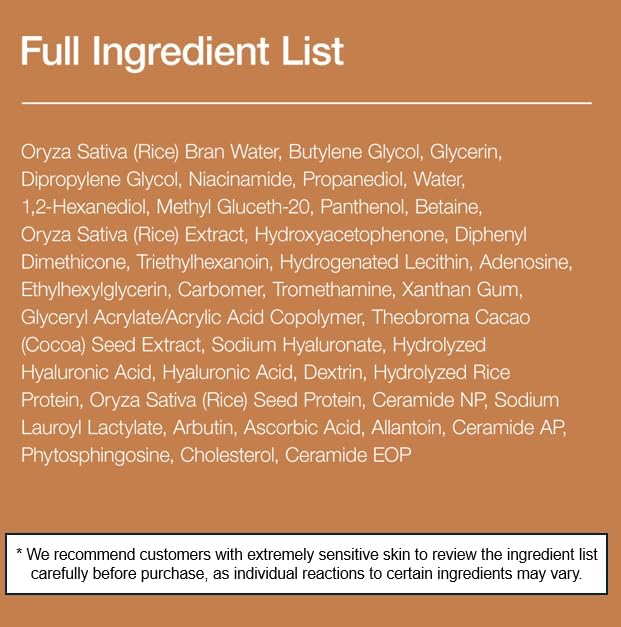 TONER LEVE E LEITOSO PARA PELE DE VIDRO: Proporciona hidratação intensa com uma mistura de Água de Arroz, Niacinamida e Ceramidas, mas deixa um acabamento refrescante e não pegajoso para alcançar a pele de vidro.